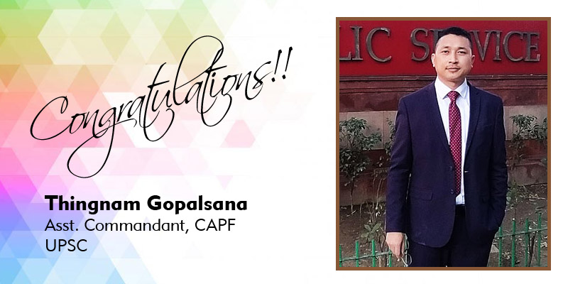 Congratulations to Shri Thingnam Gopalsana Singh S/O Thingnam Joy Singh and Mayanglambam Binashakhi Devi of Kakching Khunou Ngaikhong Leikai on being selected as an Assistant Commandant in the Central Armed Police Forces (CAPF) through the CAPF EXAMINATION, 2020 held by the UNION PUBLIC SERVICE COMMISSION (UPSC). He was ranked 101 out of 187 recommend candidates.
