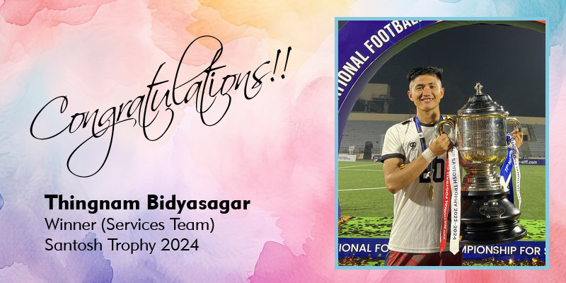 With great joy, we congratulate our own star player, Thingnam Bidyasagar Singh, on being a member of the Services Football team that won this year’s Santosh Trophy Football Tournament in Arunachal Pradesh.
